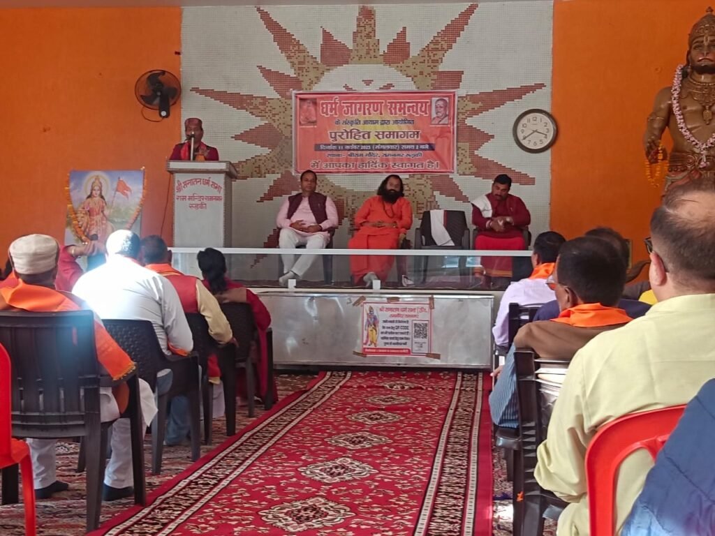 हरिद्वार/देहरादून। राम मंदिर रुड़की में धर्मजागरण समन्वय के संस्कृति आयाम द्वारा आयोजित पुरोहित समागम कार्यक्रम आयोजित हुआ जिसमें श्री बदरीनाथ केदारनाथ मंदिर समिति (बीकेटीसी) अध्यक्ष हेमंत द्विवेदी बतौर मुख्य अतिथि शामिल हुए समागम का शुभारंभ दीप प्रज्वलन, मां सरस्वती के चित्र पर माल्यार्पण तथा अतिथियों के सम्मान के साथ शुरू हुआ। कार्यक्रम को संबोधित करते हुए बीकेटीसी अध्यक्ष ने  कहा कि आज  देवभूमि उत्तराखंड अपने 25 वर्ष की विकास यात्रा पूरी कर रजत जयंती समारोह उत्साह पूर्वक मना रहा हैं। इन 25 वर्ष में उत्तराखंड ने कई महत्वपूर्ण और गौरवशाली उपलब्धियां प्राप्त हैं। देश के दूरदर्शी प्रधानमंत्री नरेन्द्र मोदी के कुशल मार्गदर्शन में और उत्तराखंड के यशस्वी मुख्यमंत्री  पुष्कर सिंह धामी  के नेतृत्व में उत्तराखंड लगातार प्रगति की ओर अग्रसर हैं। राज्य को इस रजत जयंती वर्ष में 38वें राष्ट्रीय खेलों के आयोजन का गौरव प्राप्त हुआ। इन राष्ट्रीय खेलों में उत्तराखण्ड़ ने 103 पदक प्राप्त कर नया रिकॉर्ड बनाया है। उन्होंने कहा कि इन 25 वर्षो में राज्य ने कई उपलब्धियां प्राप्त की हैं, किन्तु अभी हमें बहुत आगे जाना है तथा देवभूमि उत्तराखण्ड को एक प्रगतिशील, उन्नत एवं हर क्षेत्र में आदर्श राज्य बनाना है। इस महान उद्देश्य की प्राप्ति जन सहयोग से ही संभव है।