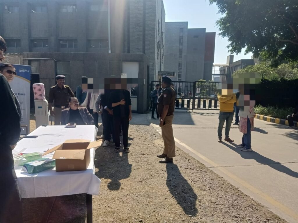 देहरादून। एसएसपी देहरादून के निर्देशों पर ड्रग्स फ्री कैम्पस अभियान के तहत दून पुलिस की कार्यवाही लगातार जारी है। पुलिस-प्रशासन व डाक्टरों की संयुक्त टीम ने निजी शिक्षण संस्थान में औचक निरीक्षण किया। रेन्डमली 10 छात्रों का ब्लड सेम्पल लिया गया, 45 छात्रो की मेडिकल जांच की गई। नशे मे लिप्त छात्रों को कडा संदेश दिया गया, छात्रों से कहा गया कि नशा छोड़े या कार्यवाही के लिये तैयार रहें। शिक्षण संस्थाान में मौजूद छात्रो को नशे से दूर रहने तथा नशे की दुष्प्रणाम की भी जानकारियां दी गई।