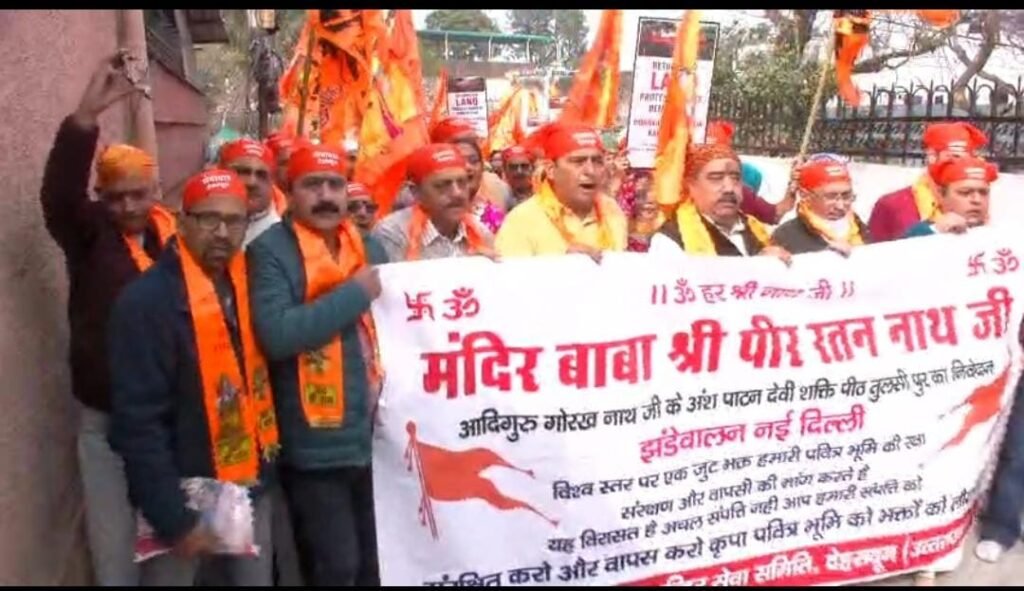 देहरादून। दिल्ली के झंडेवाला स्थित ऐतिहासिक मंदिर दरगाह बाबा श्री पीर रतन नाथ जी महाराज (पेशावर वाले) में 29 नवंबर को एमसीडी एवं डीडीए द्वारा की गई बुलडोजर कार्रवाई के विरोध में राजधानी देहरादून के खुड़बुड़ा मोहल्ले में मंदिर दरगाह समिति की ओर से शांतिपूर्ण प्रदर्शन किया गया। इस दौरान समिति सदस्यों एवं श्रद्धालुओं ने ‘राम नाम’ का पाठ करते हुए पदयात्रा निकाली और पूरे मामले को लेकर प्रेस कॉन्फ्रेंस भी आयोजित की।