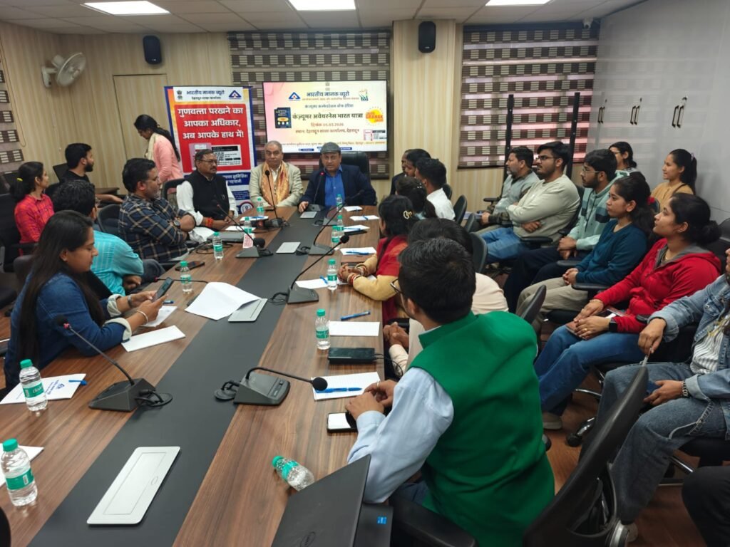 देहरादून। हरिद्वार में उपभोक्ताओं को उनके अधिकारों, कर्तव्यों तथा गुणवत्तायुक्त एवं प्रमाणित उत्पादों के महत्व के प्रति जागरूक करने के उद्देश्य से “कंज़्यूमर अवेयरनेस भारत यात्रा” कार्यक्रम का आयोजन किया गया। यह कार्यक्रम भारतीय मानक ब्यूरो (बीआईएस), देहरादून द्वारा जवाहर नेहरू राष्ट्रीय युवा केंद्र, हरिद्वार एवं सेतु फाउंडेशन के सहयोग से तथा कंज्यूमर कन्फेडरेशन ऑफ इंडिया के तत्वावधान में भारतीय मानक ब्यूरो, देहरादून के निदेशक एवं शाखा प्रमुख सौरभ तिवारी के निर्देशन में जवाहर नेहरू राष्ट्रीय युवा केंद्र हरिद्वार में आयोजित किया गया।