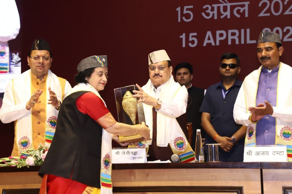 ऋषिकेश। केंद्रीय स्वास्थ्य और परिवार कल्याण मंत्री जगत प्रकाश नड्डा ने एम्स ऋषिकेश के पांचवें दीक्षांत समारोह की अध्यक्षता की। उनके साथ उत्तराखंड के मुख्यमंत्री पुष्कर सिंह धामी; उत्तराखंड के स्वास्थ्य और शिक्षा मंत्री धन सिंह रावत; केंद्रीय मंत्री अजय टम्टा और लोकसभा सांसद अजय भट्ट, त्रिवेंद्र सिंह रावत; और उत्तराखंड विधानसभा की अध्यक्ष रितु खंडूरी भूषण उपस्थित थे। सभा को संबोधित करते हुए जेपी नड्डा ने कहा कि दीक्षांत समारोह एक विशेष अवसर है जो छात्रों की उपलब्धियों को मान्यता देता है। उन्होंने कहा कि देश के प्रत्येक गरीब व्यक्ति को सस्ती और गुणवत्तापूर्ण स्वास्थ्य सेवा प्रदान करना केंद्र सरकार की प्राथमिकता है। जेपी नड्डा ने देश भर के एम्स संस्थानों की चिकित्सा शिक्षा और सेवाओं में उपलब्धियों को रेखांकित करते हुए कहा कि इस सदी की शुरुआत तक, भारत में केवल एक एम्स था, वहीं आज, देश में 22 एम्स संचालित हो रहे हैं। उन्होंने कहा कि एम्स ऋषिकेश ने अपनी उत्कृष्ट सेवाओं के कारण स्वास्थ्य संस्थानों के बीच एक अद्वितीय पहचान बनाई है। उन्होंने नागरिकों के लिए विश्व-स्तरीय स्वास्थ्य सेवा प्रदान करने के लिए केंद्र सरकार की प्रतिबद्धता को दोहराया। उन्होंने कहा सरकार ऐसी स्वास्थ्य सेवा प्रदान करने पर केंद्रित है जो न केवल उपचारात्मक हो बल्कि निवारक, उपशामक और पुनर्वासिक भी हो। स्वास्थ्य क्षेत्र में केंद्र सरकार की उपलब्धियों को उजागर करते हुए, श्री नड्डा ने कहा, आज, देश भर में 1.75 लाख आयुष्मान आरोग्य मंदिर संचालित हो रहे हैं जो स्वास्थ्य और कल्याण से संबंधित विभिन्न सेवाएं प्रदान कर रहे हैं। पिछले 10 वर्षों में मेडिकल कॉलेजों में 101 प्रतिशत की वृद्धि हुई है, और अब देश भर में कुल 780 मेडिकल कॉलेज हैं। एमबीबीएस सीटों में 130 प्रतिशत और पीजी सीटों में 138 प्रतिशत की वृद्धि हुई है। उन्होंने आगे कहा इसी तरह, पैरामेडिक्स की जरूरतों को पूरा करने के लिए, 157 नर्सिंग कॉलेज भी स्थापित किए जा रहे हैं, जो मेडिकल कॉलेजों के साथ सह-स्थित होंगे।