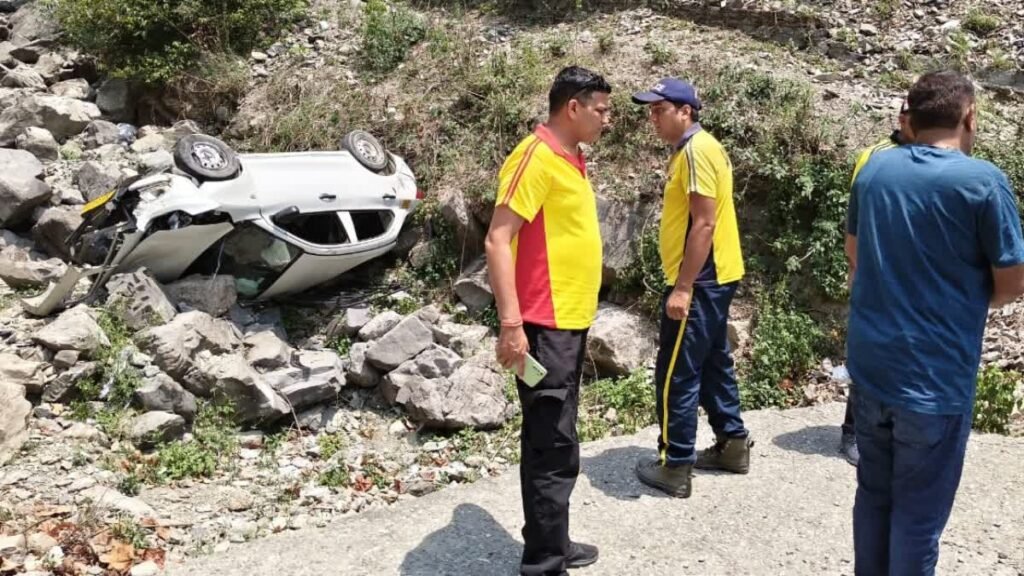 अनियंत्रित कार सड़क के नीचे खड्ड में पलटी,तीन गंभीर