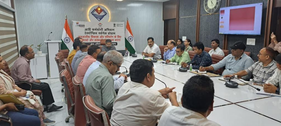 मुख्य विकास अधिकारी अभिनव शाह ने बैठक में आदि कर्मयोगी अभियान के अन्तर्गत जनपद के प्रतीक चिन्ह का वर्चुअल रूप से अनावरण किया और सभी अधिकारियों को इस अभियान के अन्तर्गत पूर्ण सत्यनिष्ठा से मिशन को पूरा करने की शपथ दिलाई। उन्होंने निर्देशित किया कि चयनित जनजाति बाहुल्य गांवों को शत प्रतिशत योजनाओं से आच्छादित किया जाए।